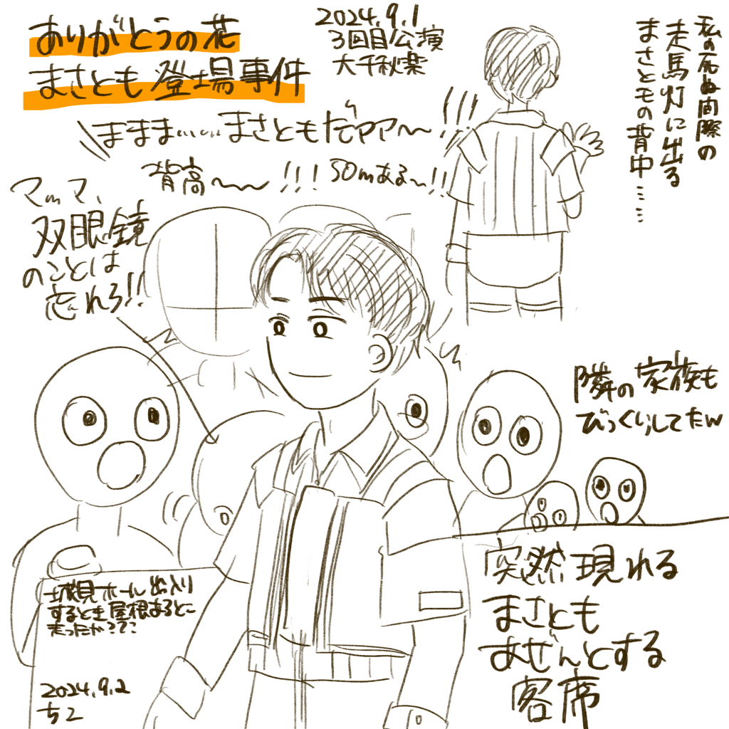 2022のあさペラ!でオッ??!?ってなって、2023で快挙を成し遂げた感。そして、2024でさらにパワーアップしてしまう。うお~~~~!!!!!まさとも止まんねぇ~~~~!!!!!まさともくん、すごぉ~~い!!!!(あいつこそ加古郡播磨町の王子様