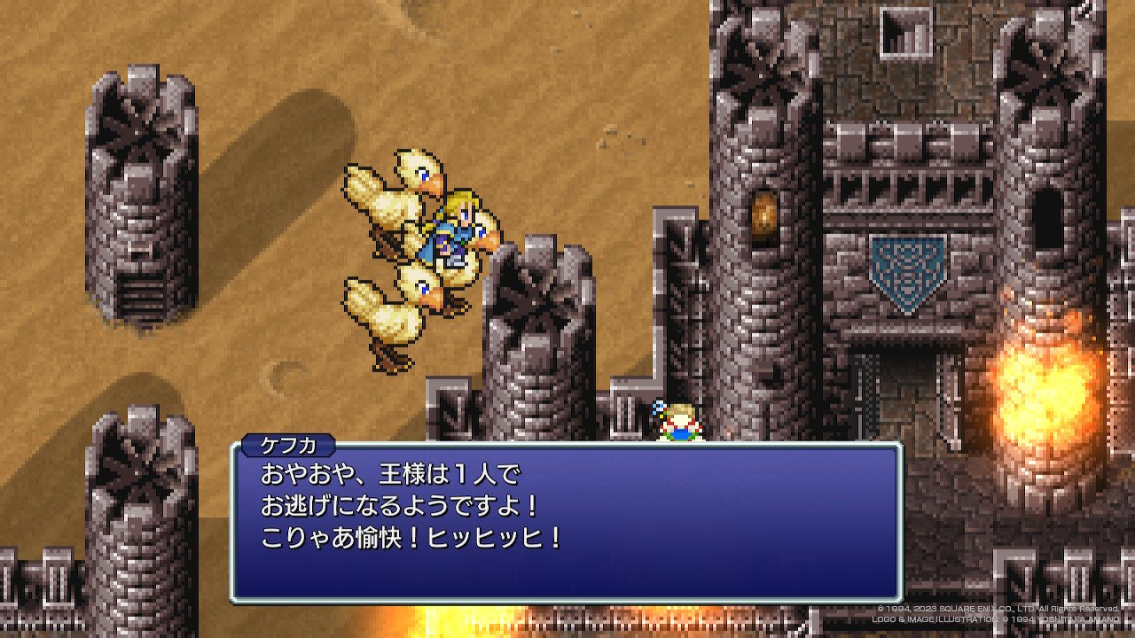 ホォーッホッホッホの笑い声は割とまんまでよかったんだけど、SFCの電子音から人のコーラスに変わってる部分も結構あって、これが、ピクセルリマスター……ってなりましたね。あのミュージカルシーンも人の声に変わってるみたいで、電子音が良かったナ……と懐古厨ぶる反面楽しみでもある。
