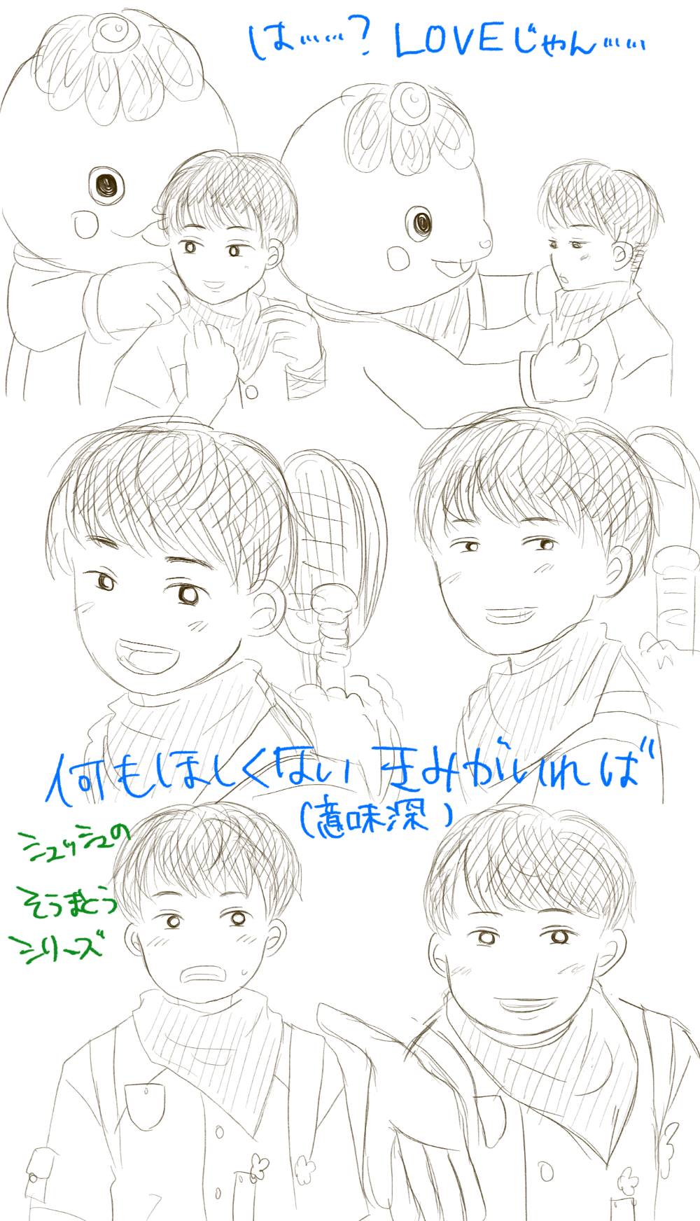スカーフ着けてあげるとこのシュッシュとかもういとしさ慈しみしかないじゃないですか、五歳のくせに。LOVEじゃん……。まさともも元々着けてたマフラーを取って、代わりにシュッシュからもらったスカーフを着けてくれるんですよね。そこからもLOVE……。