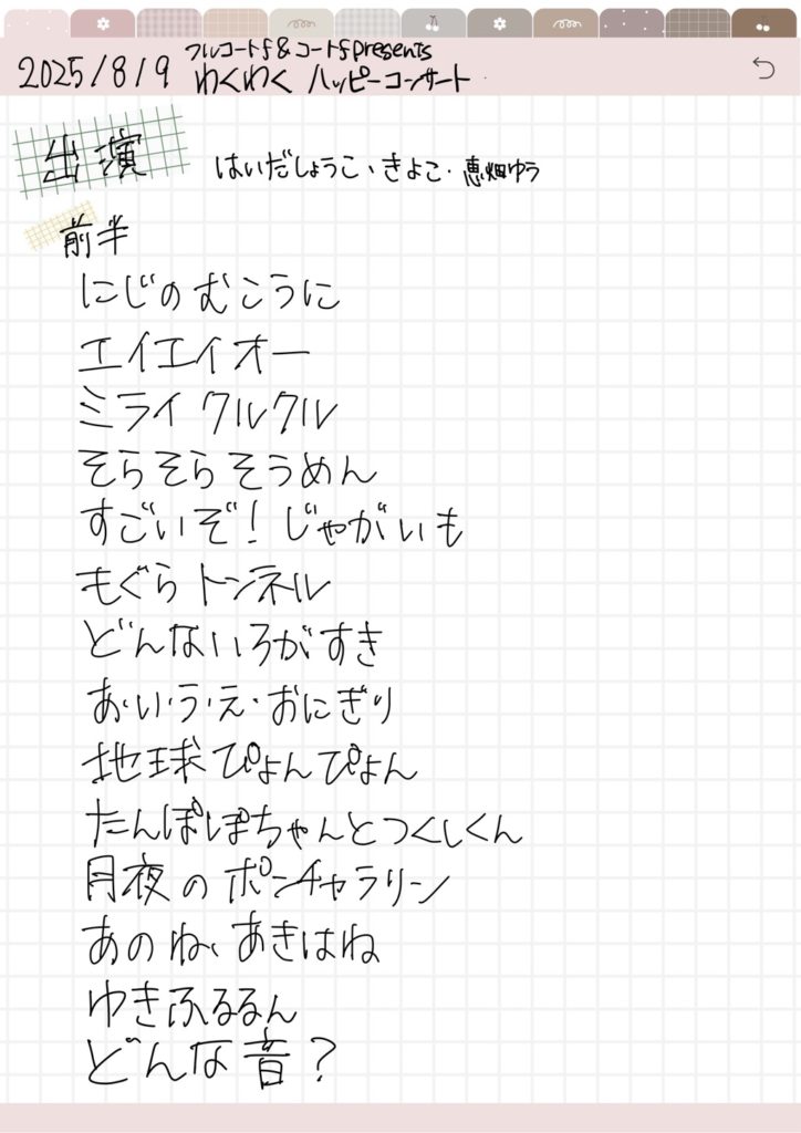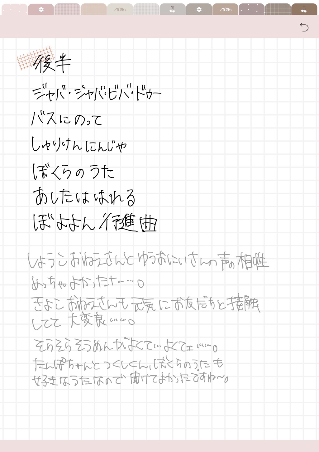 たんぽぽちゃんとつくしくんも好きだし、ぼくらのうたも歌が好きだからめっちゃ嬉しかったな。